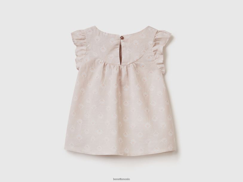 beige Benetton barn mønstret bluse i linblanding 20TRB2857