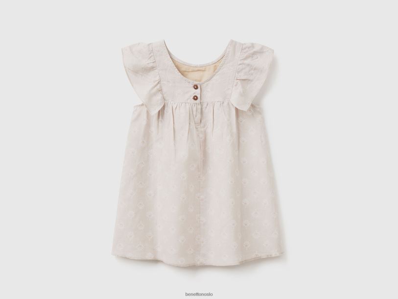 beige Benetton barn mønstret kjole i linblanding 20TRB5651