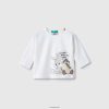 beige Benetton barn stripet t-skjorte med lomme 20TRB5821
