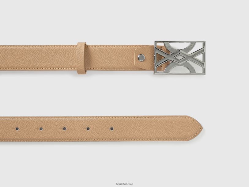 beige Benetton kvinner beige belte med logoert spenne 20TRB783