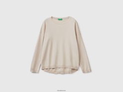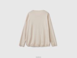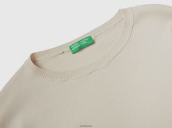 beige Benetton kvinner bomullsgenser med rund hals 20TRB204