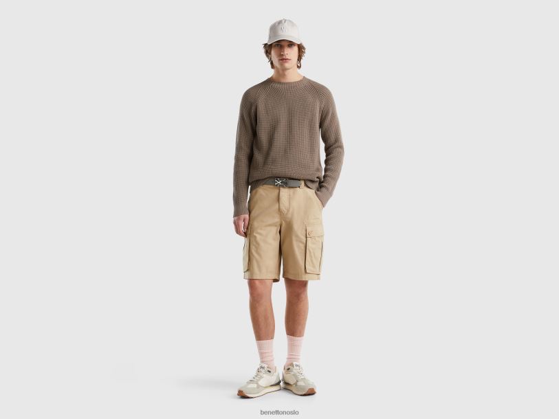 beige Benetton kvinner cargo bermudaer i ren bomull 20TRB4627
