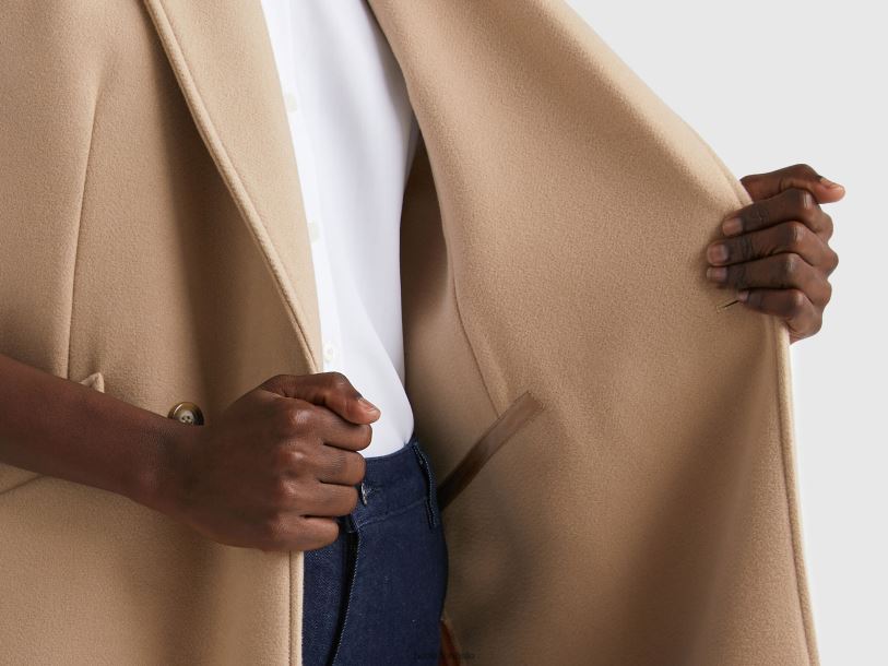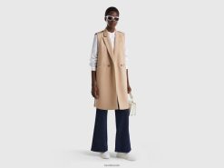 beige Benetton kvinner ermeløs kåpe 20TRB3713