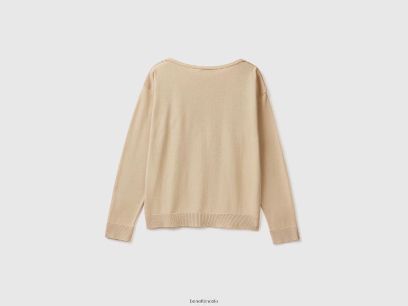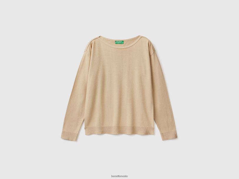 beige Benetton kvinner genser med båthals 20TRB104