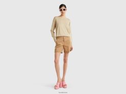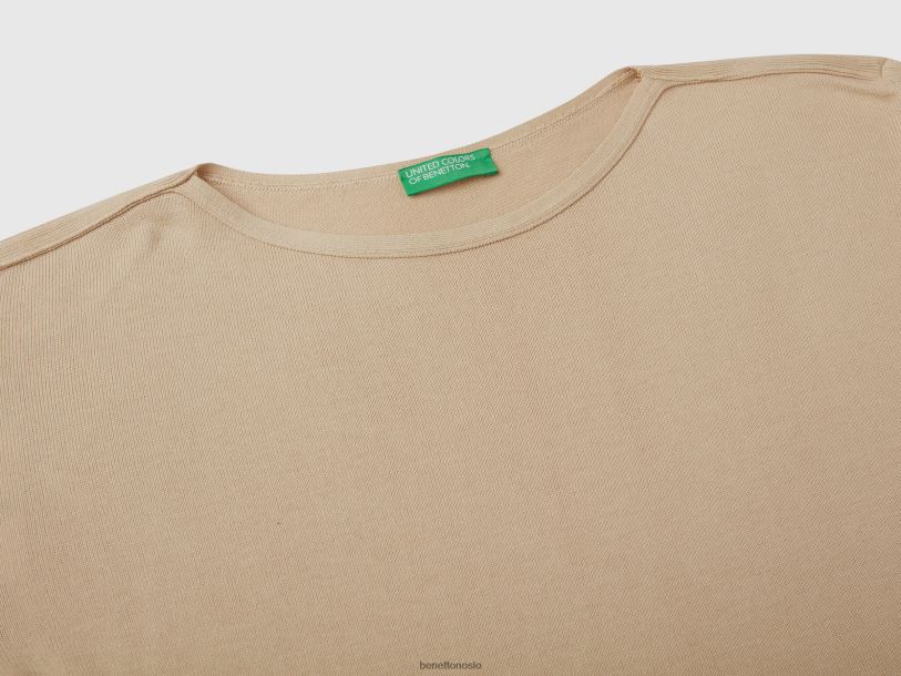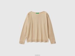 beige Benetton kvinner genser med båthals 20TRB3519