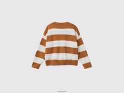 beige Benetton kvinner stripete genser i trikotbomull 20TRB34