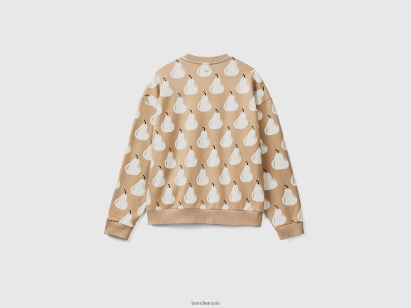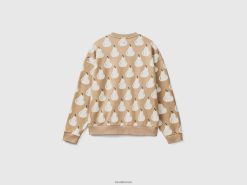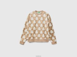 beige Benetton menn beige genser med pæretrykk 20TRB1320