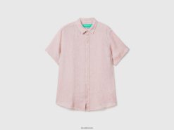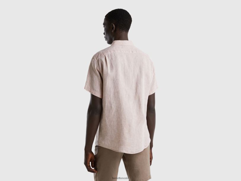 beige Benetton menn Kortermet skjorte i 100 % lin 20TRB1361