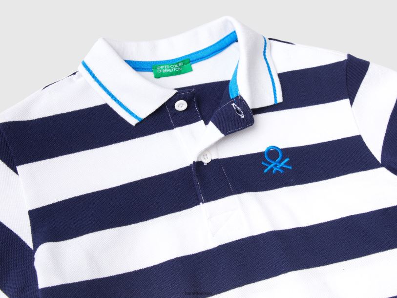 blå Benetton barn kortermet polo med striper 20TRB4910