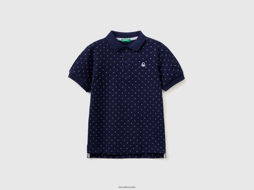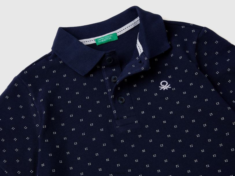 blå Benetton barn mikromønstret polo med smal passform 20TRB1897