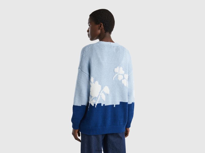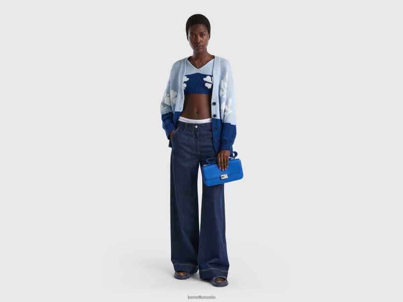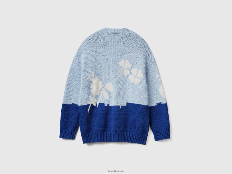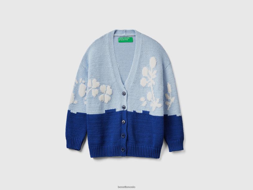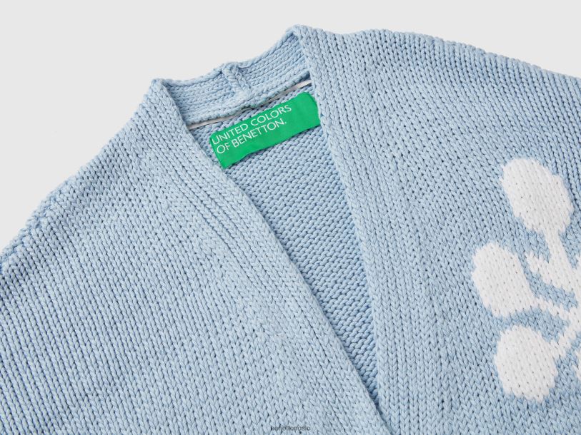 blå Benetton kvinner blå cardigan med blomsterinnlegg 20TRB86