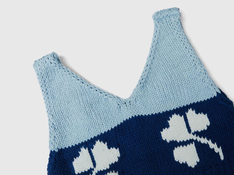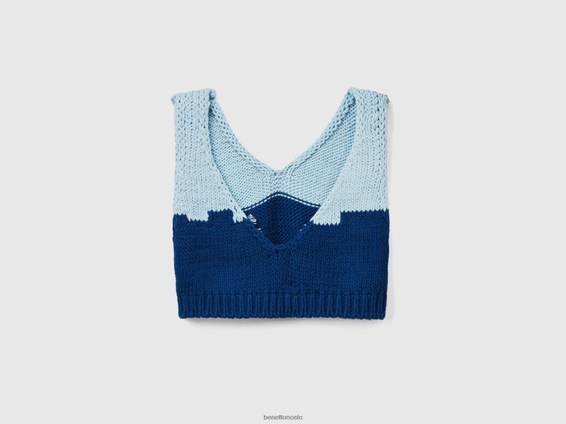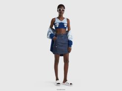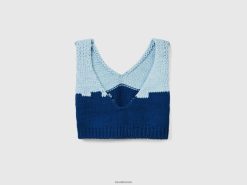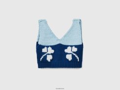 blå Benetton kvinner blå cropped topp med floral innlegg 20TRB306