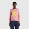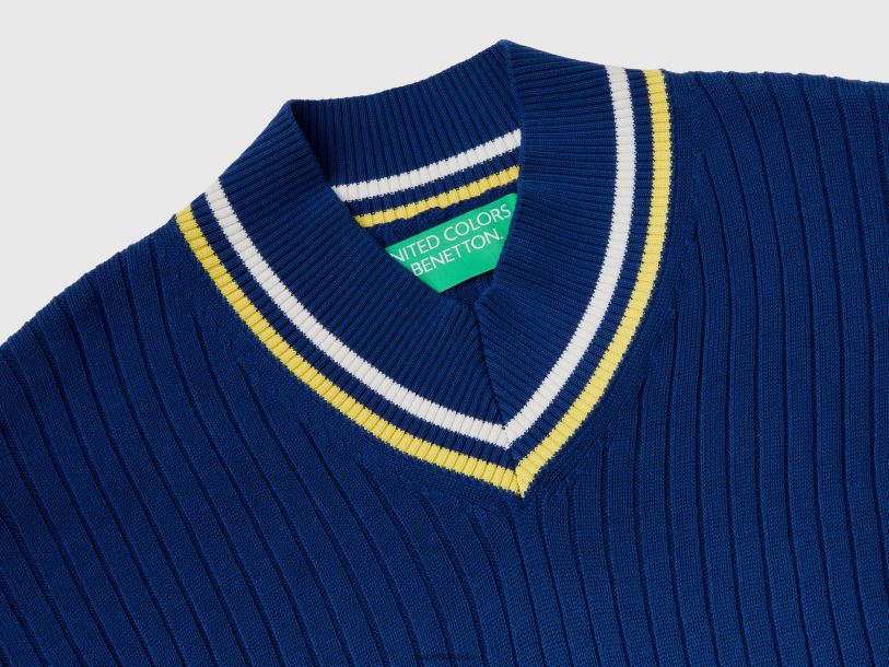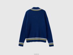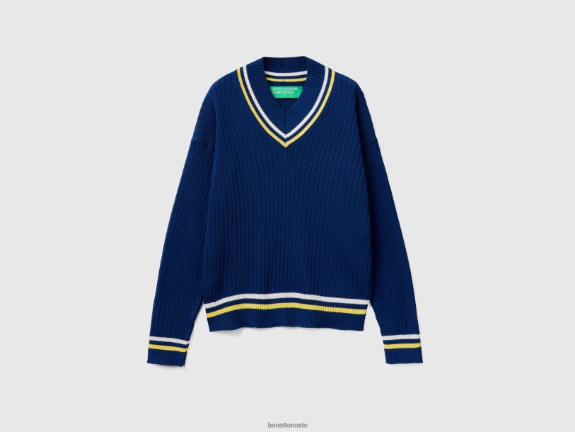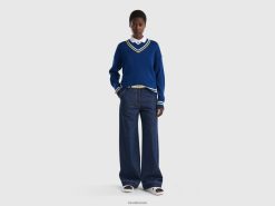 blå Benetton kvinner blå genser med stripete kanter 20TRB3539