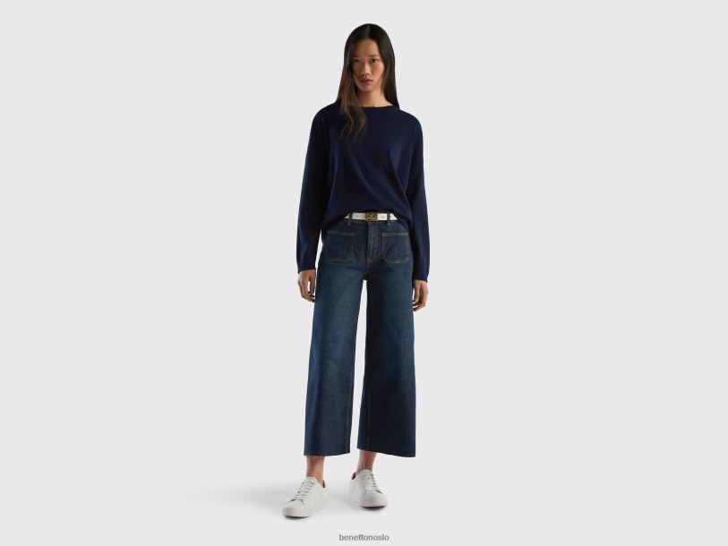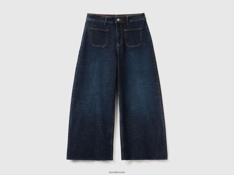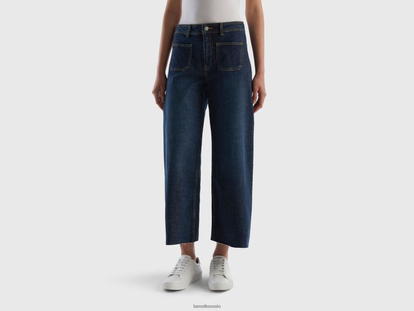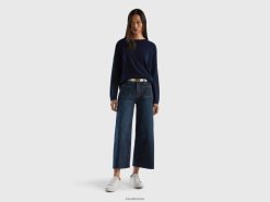 blå Benetton kvinner cropped jeans med vide ben 20TRB668