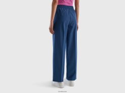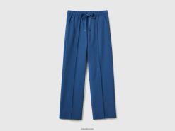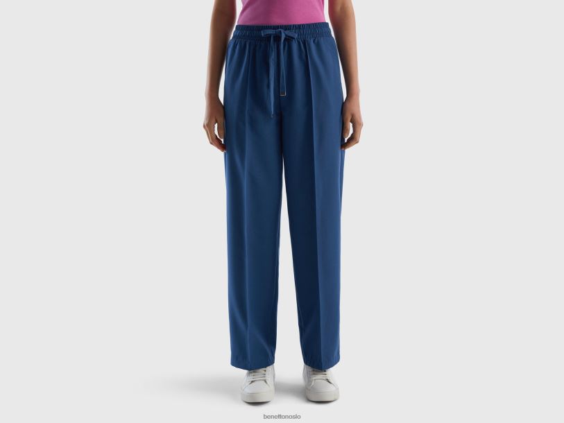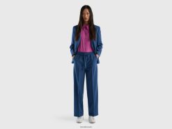 blå Benetton kvinner flytende bukse med snøring 20TRB569