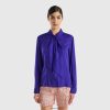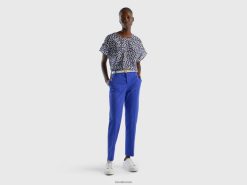 blå Benetton kvinner mønstret bluse i ren bomull 20TRB497