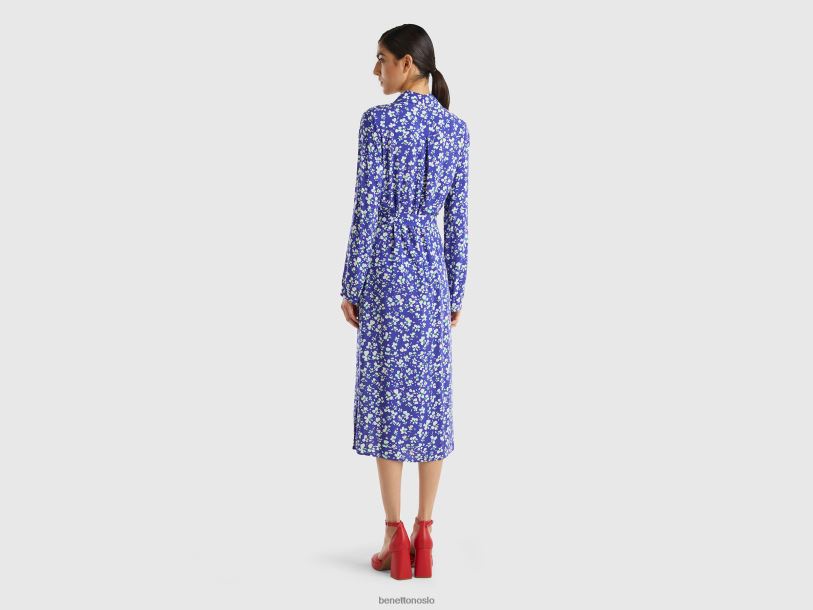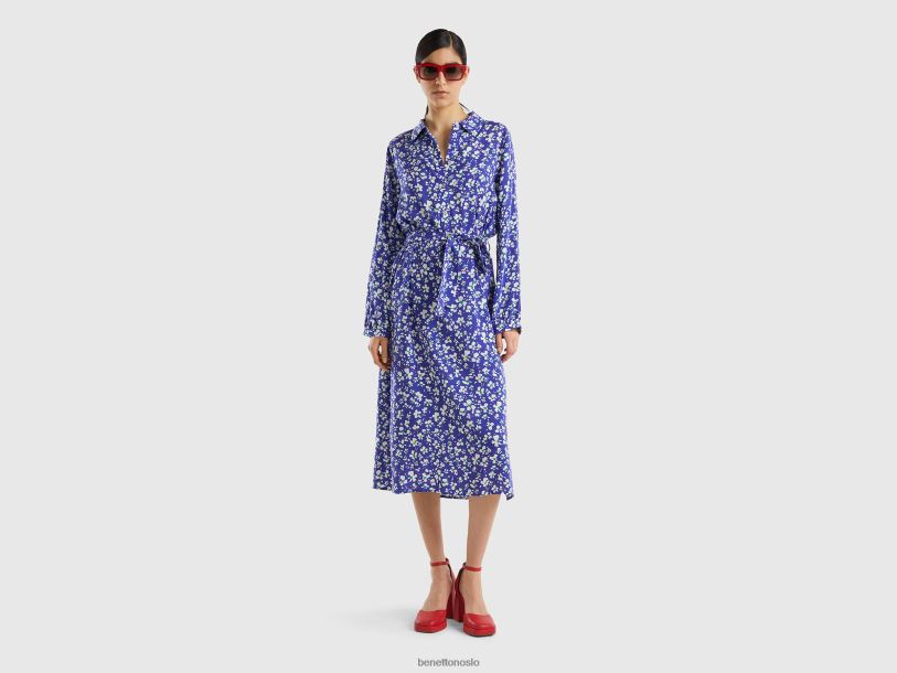 blå Benetton kvinner mønstret flytende skjortekjole 20TRB4016
