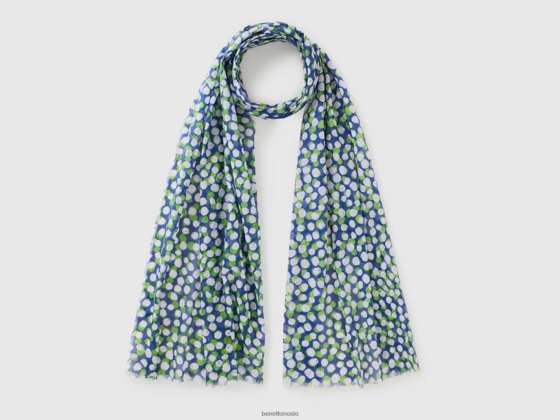 blå Benetton kvinner mønstret skjerf i økologisk bomull 20TRB807