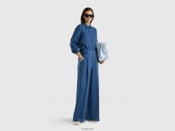 blå Benetton kvinner palazzobukse i 100 % lin 20TRB4101