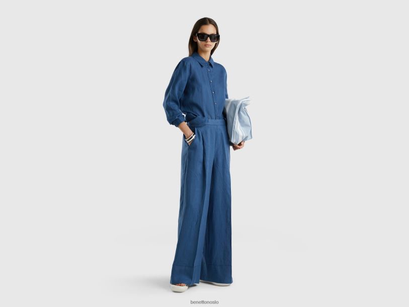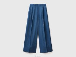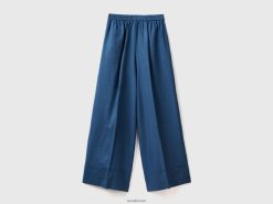 blå Benetton kvinner palazzobukse i 100 % lin 20TRB636