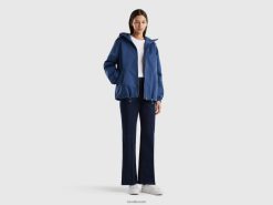 blå Benetton kvinner regnfrakk med hette 20TRB262