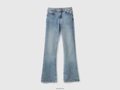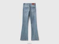 blå Benetton kvinner t-skjorte i ren bomull med v-hals 20TRB437