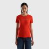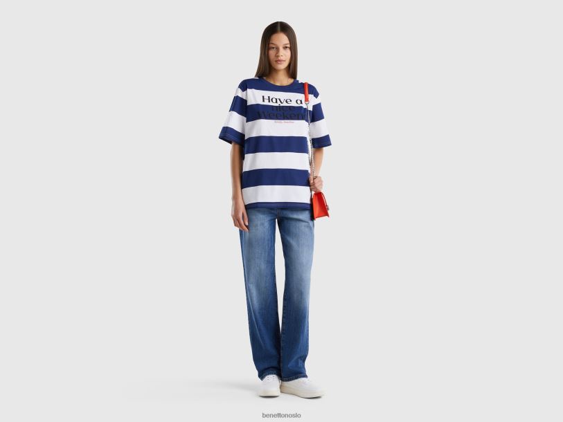 blå Benetton kvinner stripet t-skjorte med slagord 20TRB3797