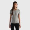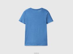 blå Benetton kvinner t-skjorte i ren bomull med v-hals 20TRB3910