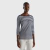 blå Benetton kvinner t-skjorte med båthals i 100 % bomull 20TRB458