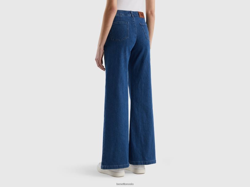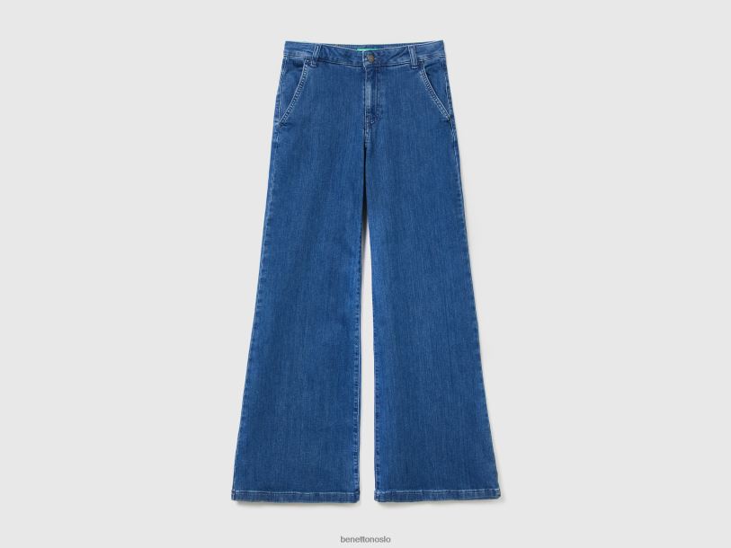 blå Benetton kvinner utsvingte jeans i stretchbomull 20TRB679