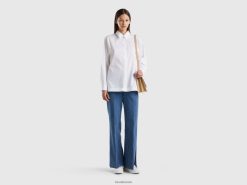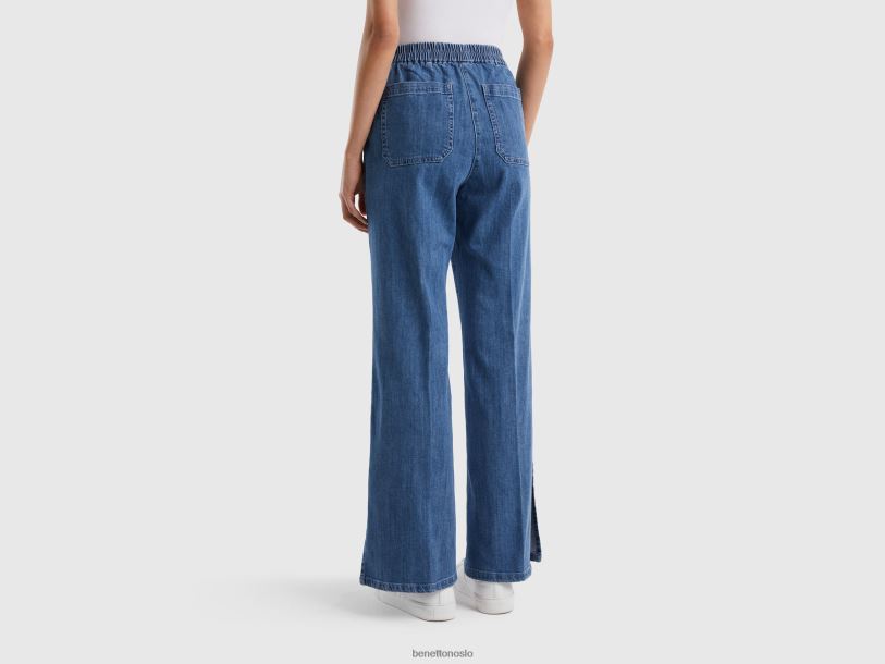 blå Benetton kvinner utsvingte jeans med splitt 20TRB4144