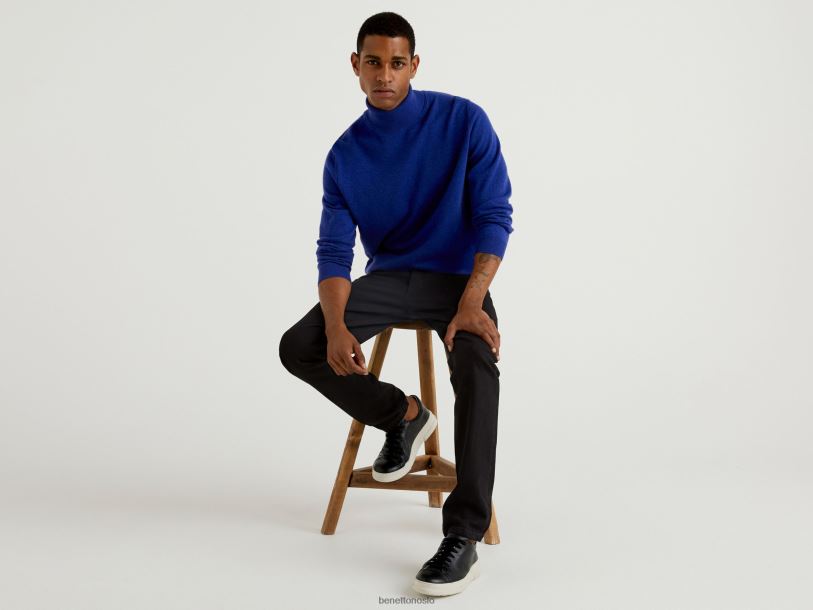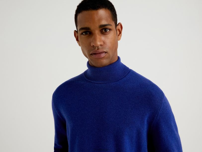 blå Benetton menn blå turtleneck i ren merinoull 20TRB1178