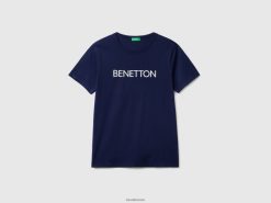 blå Benetton menn t-skjorte i økologisk bomull med logotrykk 20TRB1229