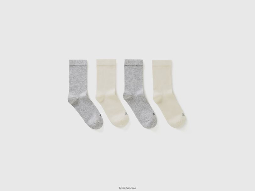 flerfarget Benetton barn fire par hvite og grå sokker 20TRB2065