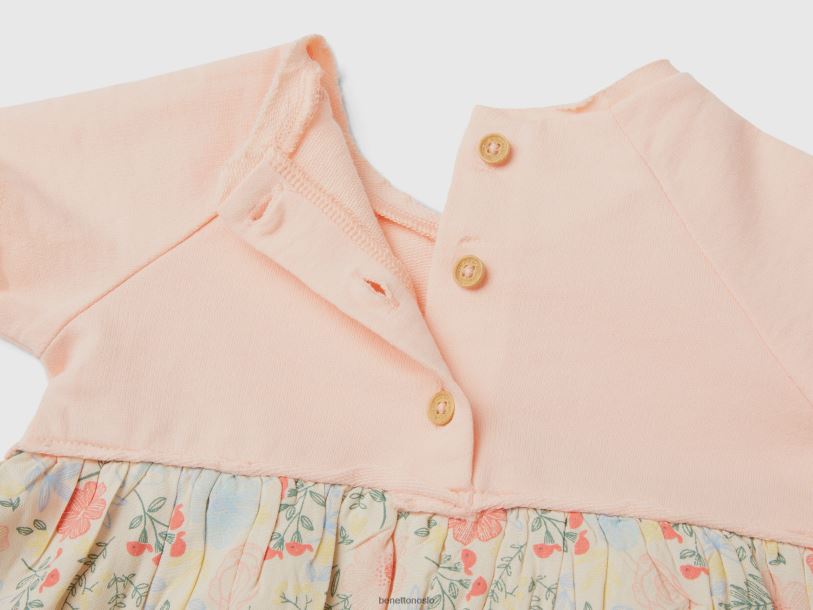 flerfarget Benetton barn kjole med blomster i bærekraftig viskose 20TRB3287