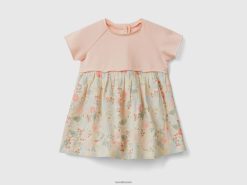 flerfarget Benetton barn kjole med blomster i bærekraftig viskose 20TRB5956