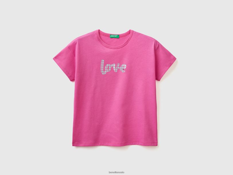 fuchsia Benetton barn boxy fit t-skjorte med applikasjon 20TRB5218