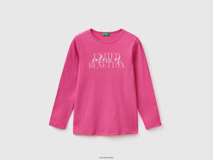 fuchsia Benetton barn langermet t-skjorte med glittertrykk 20TRB2485
