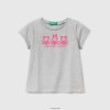 fuchsia Benetton barn T-skjorte i økologisk bomull med trykk 20TRB5550
