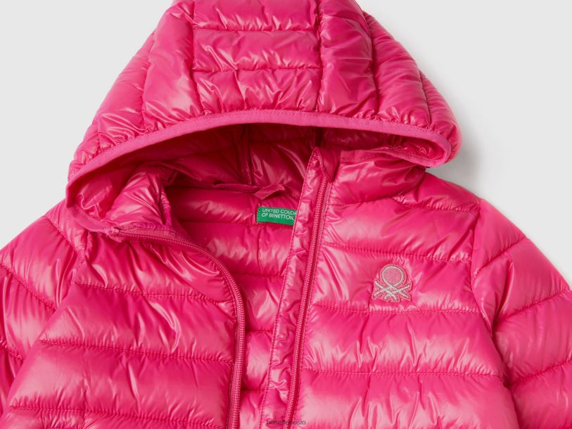 fuchsia Benetton barn vattert jakke med hette 20TRB5530