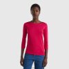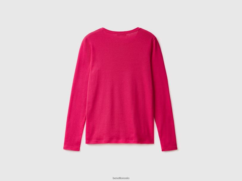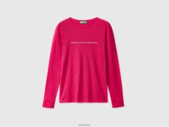 fuchsia Benetton kvinner fuchsia langermet t-skjorte i 100 % bomull 20TRB334