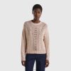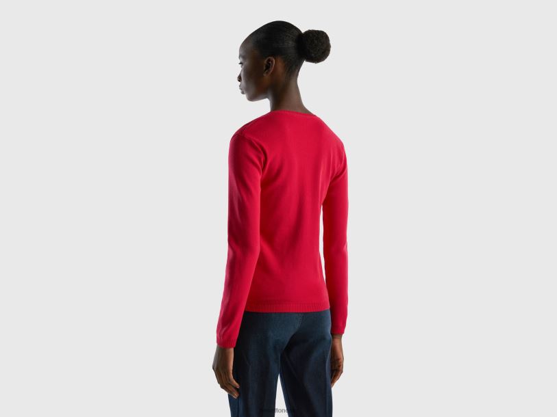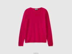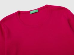 fuchsia Benetton kvinner genser med rund hals i ren bomull 20TRB3574