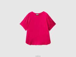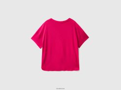 fuchsia Benetton kvinner t-skjorte i bærekraftig stretch viskose 20TRB3813