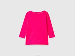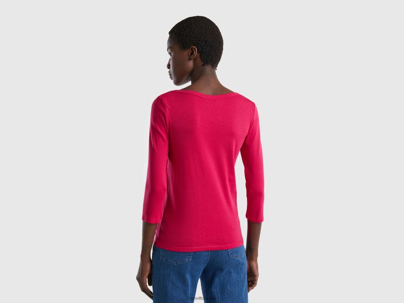 fuchsia Benetton kvinner t-skjorte med båthals i 100 % bomull 20TRB3808