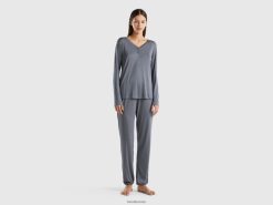 grå Benetton kvinner bukser i bærekraftig stretch viskose 20TRB4290