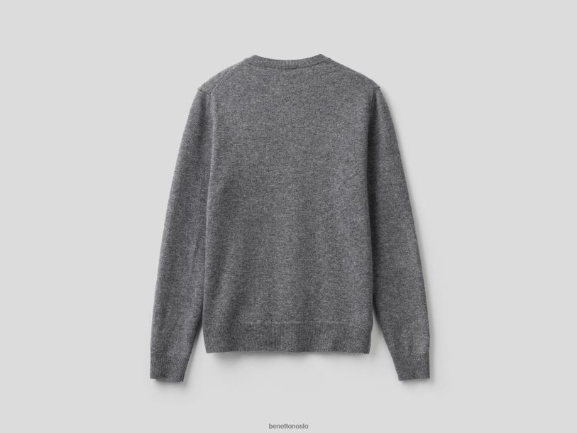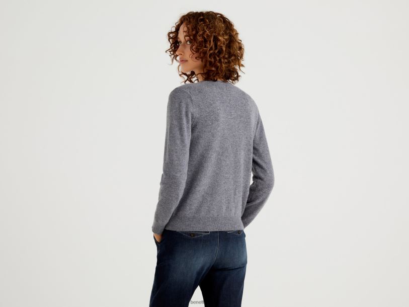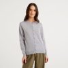 grå Benetton kvinner grå cardigan med rund hals i ren merinoull 20TRB183
