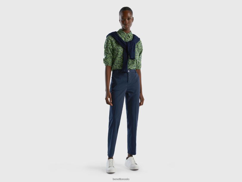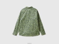 grønn Benetton kvinner 100% bomullsmønstret skjorte 20TRB3977