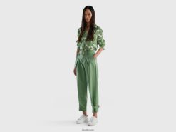 grønn Benetton kvinner bukser med høy midje med belte 20TRB598