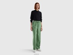 grønn Benetton kvinner flytende bukse med snøring 20TRB570