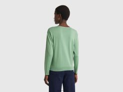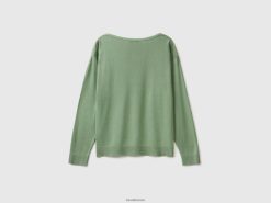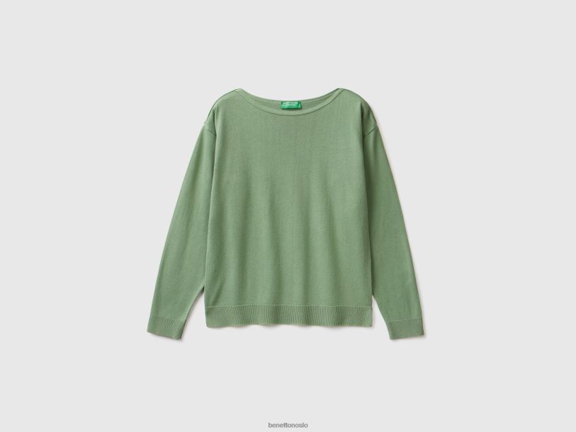 grønn Benetton kvinner genser med båthals 20TRB56